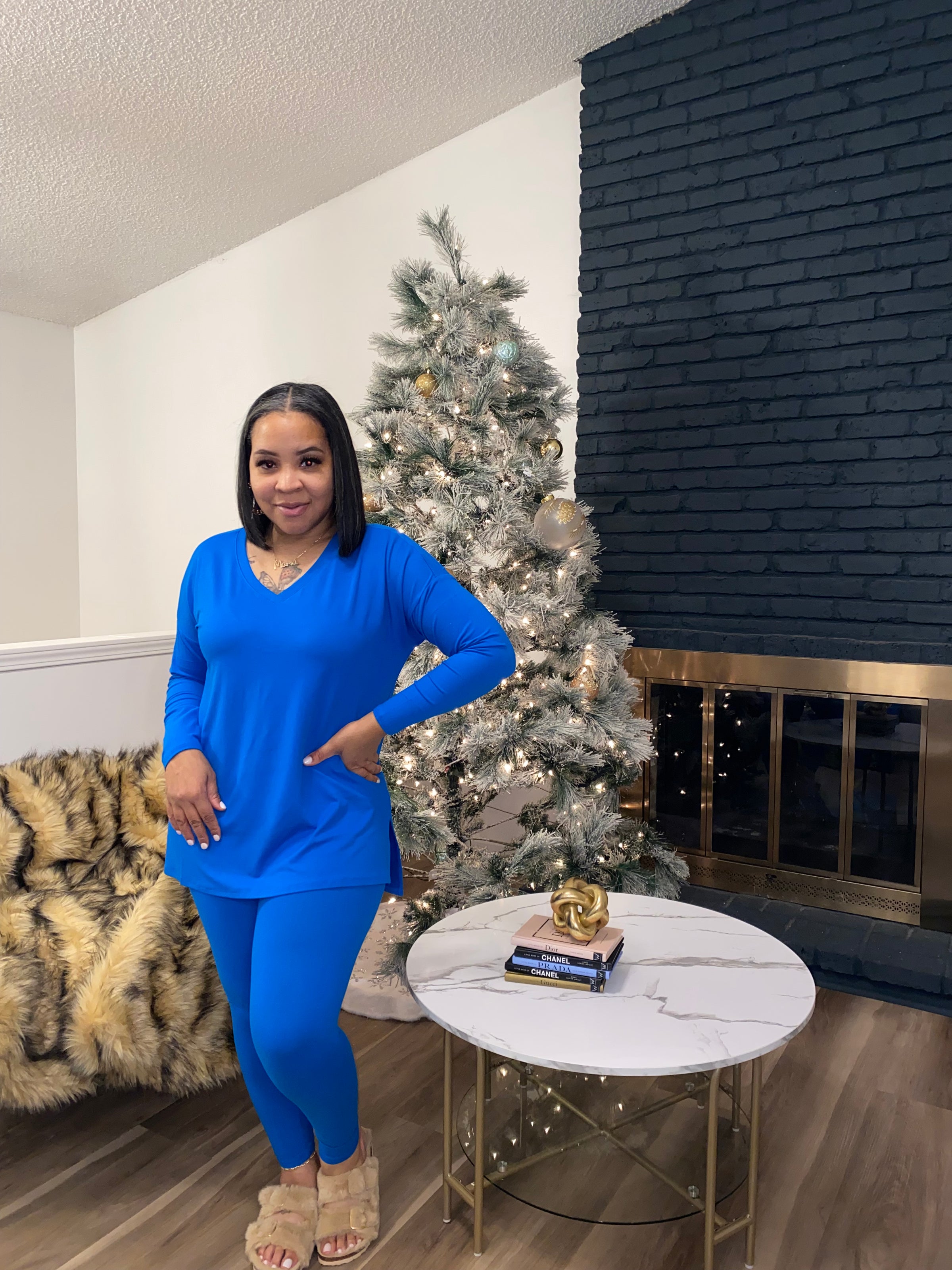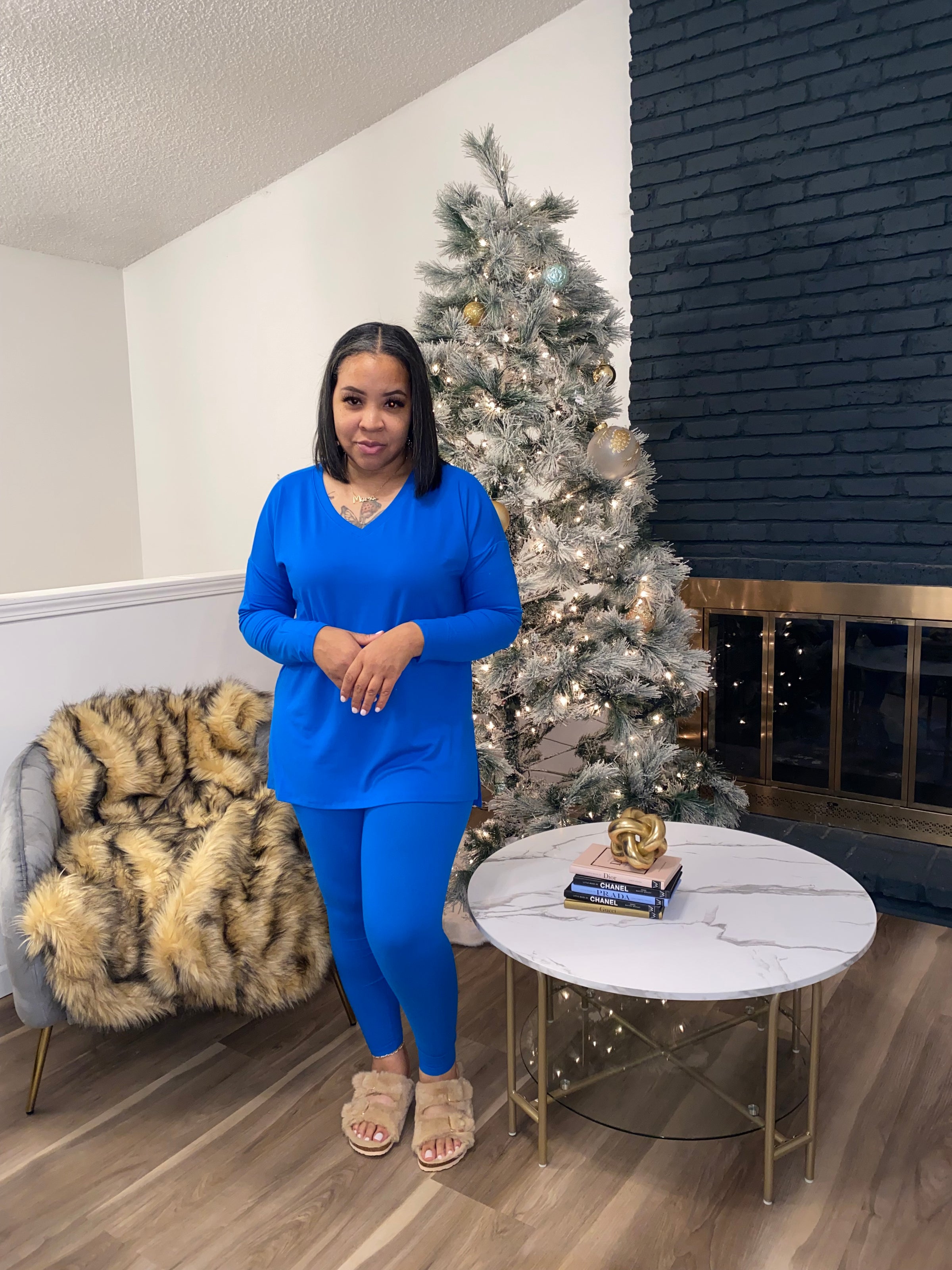 Butter Soft Long Sleeve V- Neck Legging Set|Blue