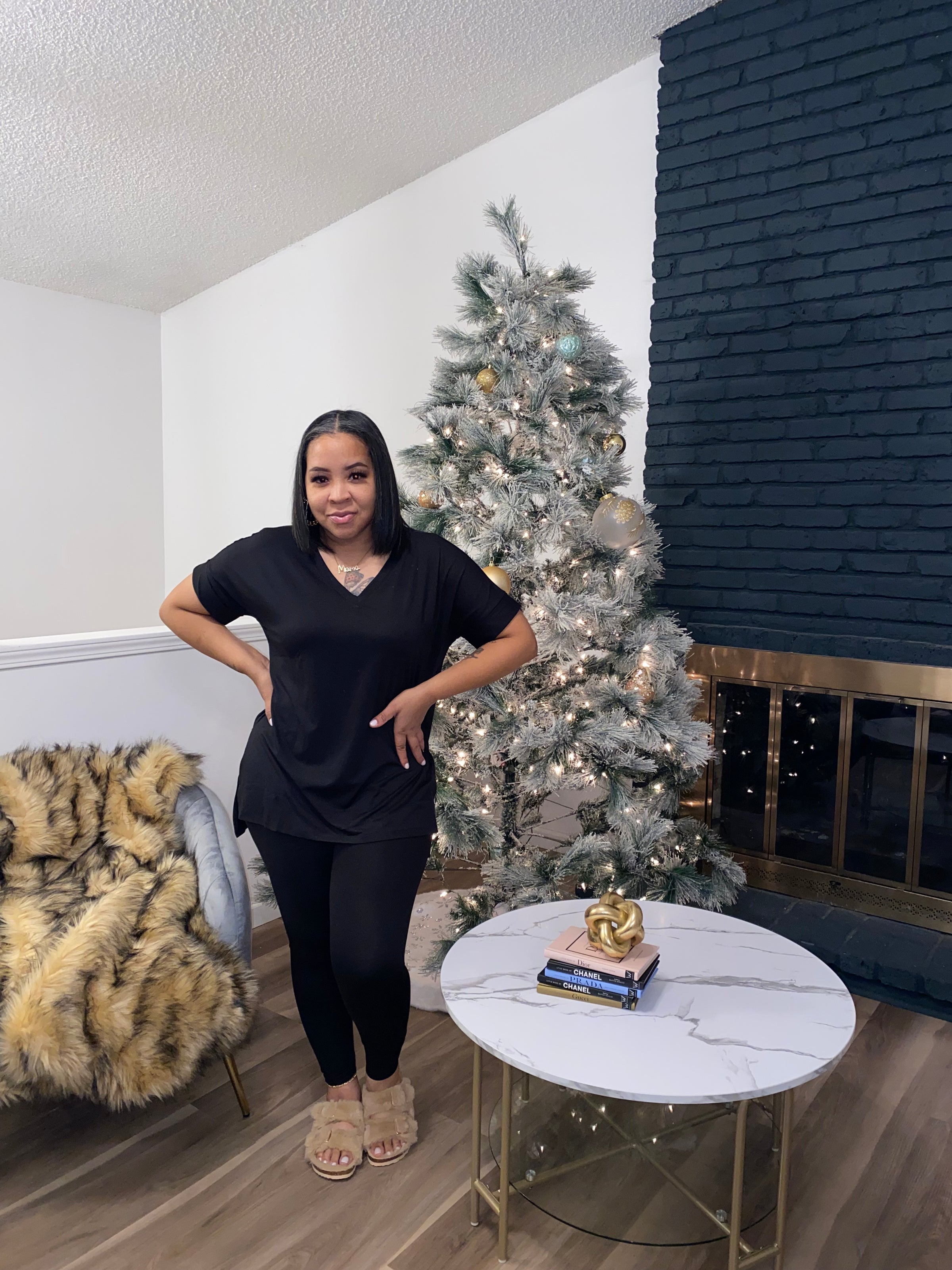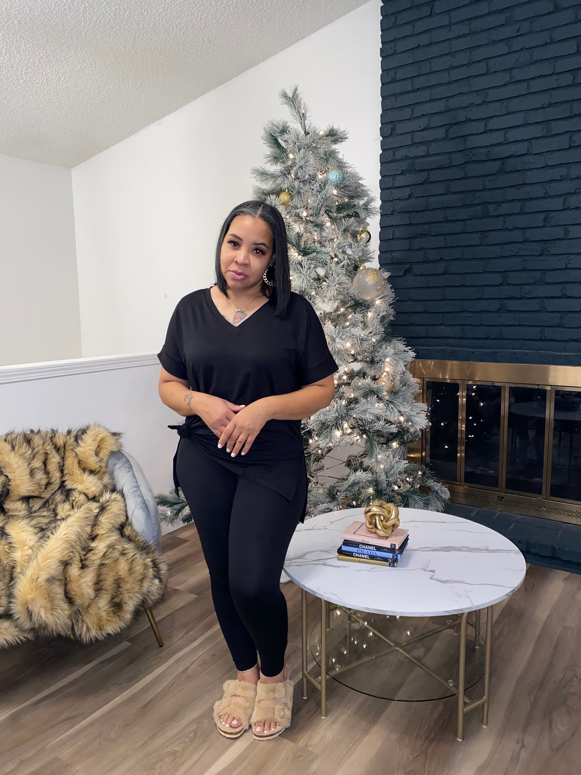Butter Soft Microfiber V- Neck Legging Set|Black