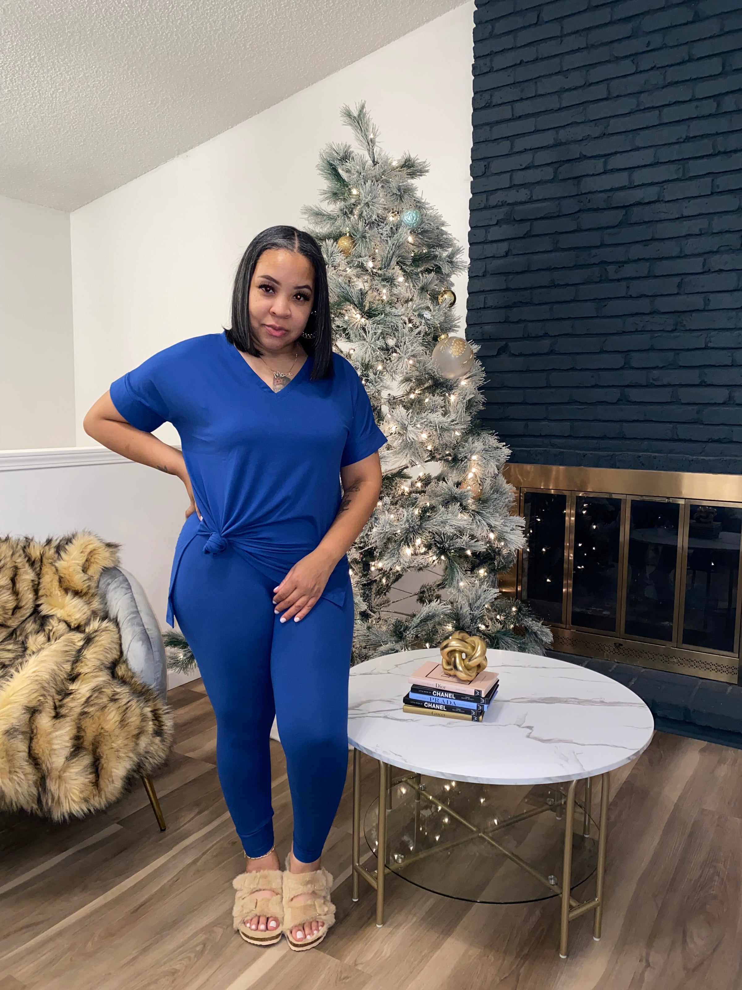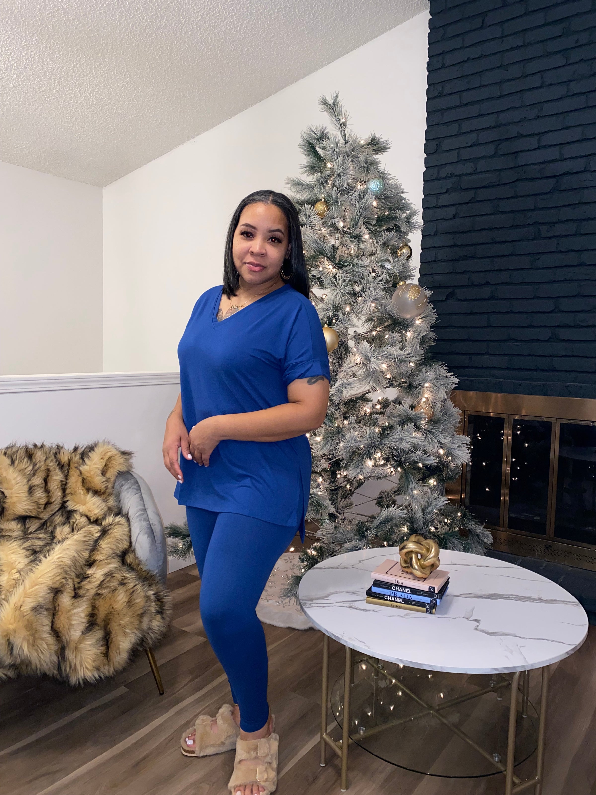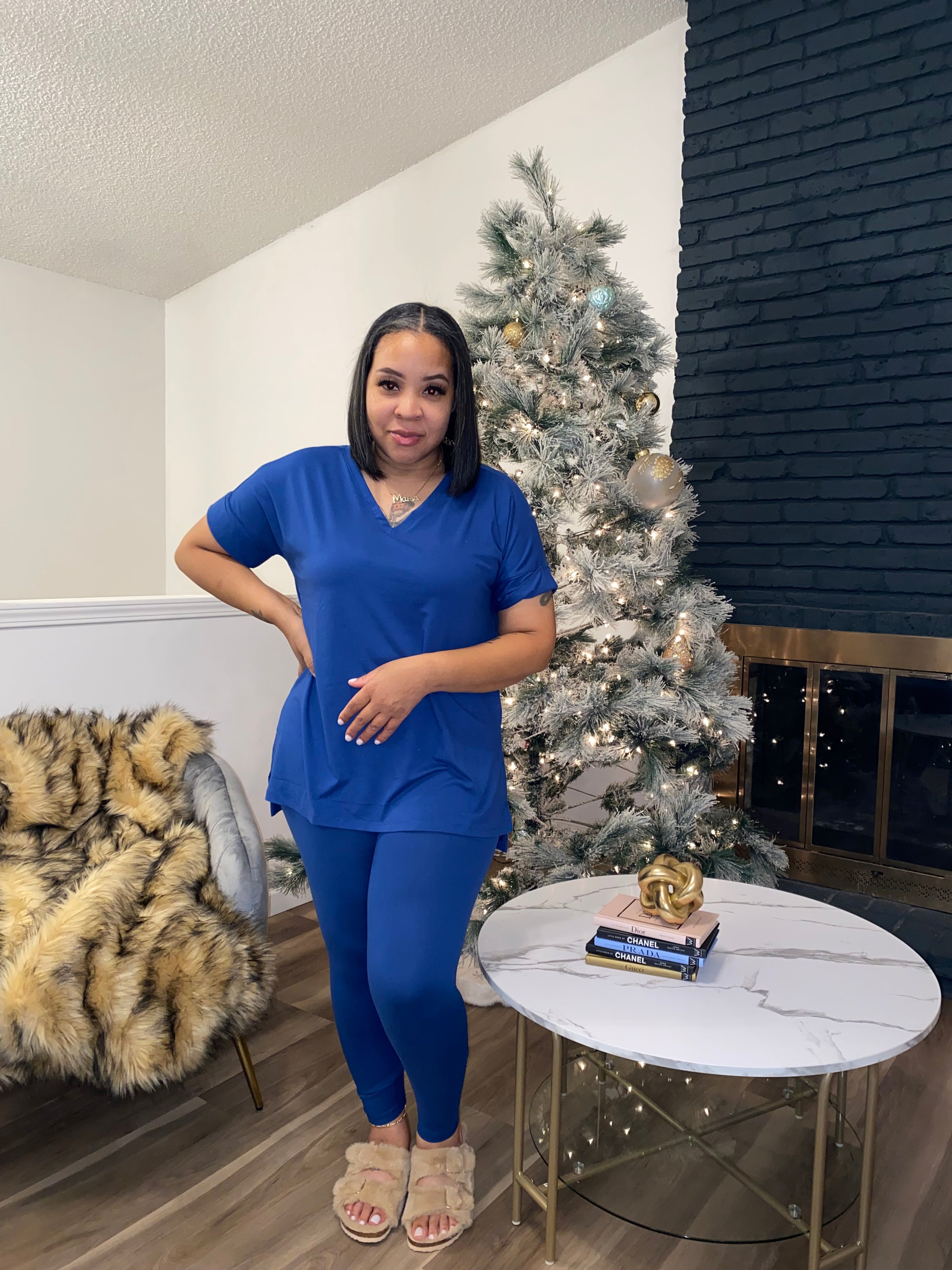 Butter Soft Microfiber V- Neck Legging Set|Navy