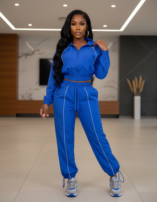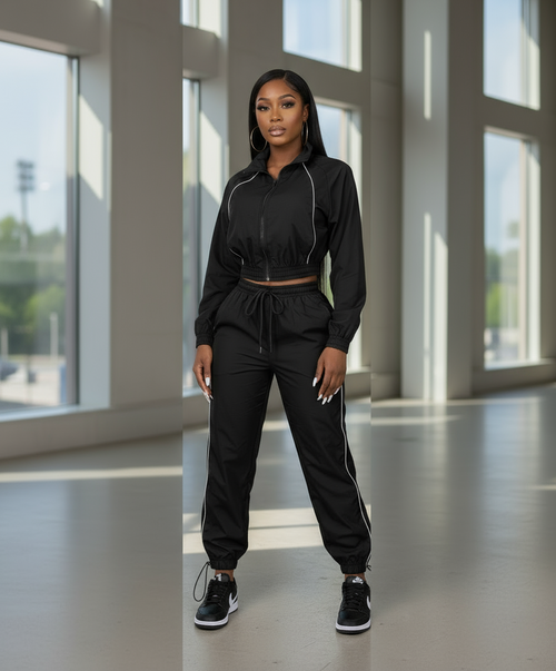 2PC Autumn Streak Windbreaker Pants Set| Black