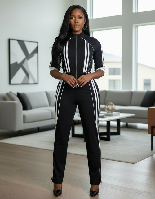 Vintage Sport Crop Jacket High Waist Legging Set|Black