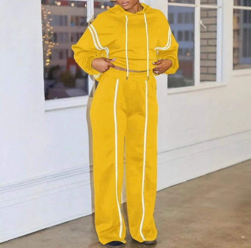 Indulge in ultimate comfort with our "Pin Stripe Hooded Pants Set." Designed for a relaxed fit, these pants prioritize both style and ease. The hooded collar and long sleeves exude sophistication, while the elastic waistline creates a flattering silhouette. Dress them down with sneakers for a casual look, or elevate them with heels and statement accessories for a night out.