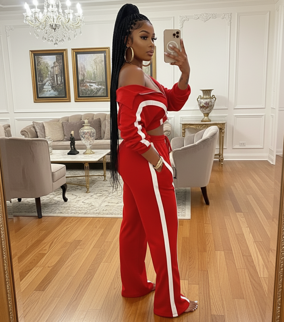 Retro Collar Jacket Pants Set| Red