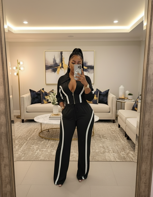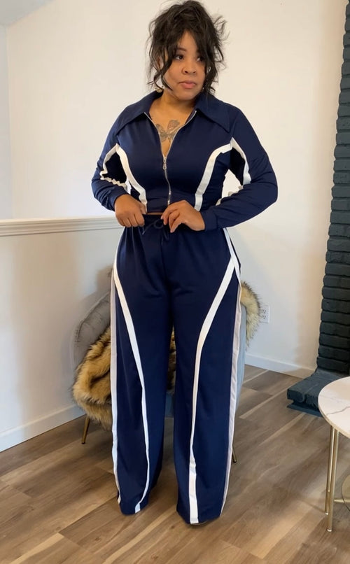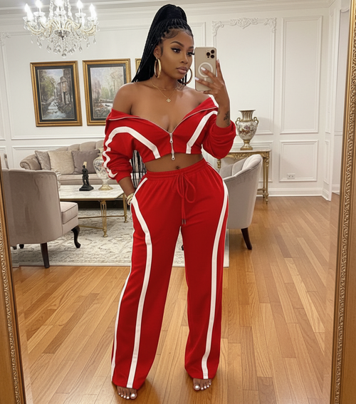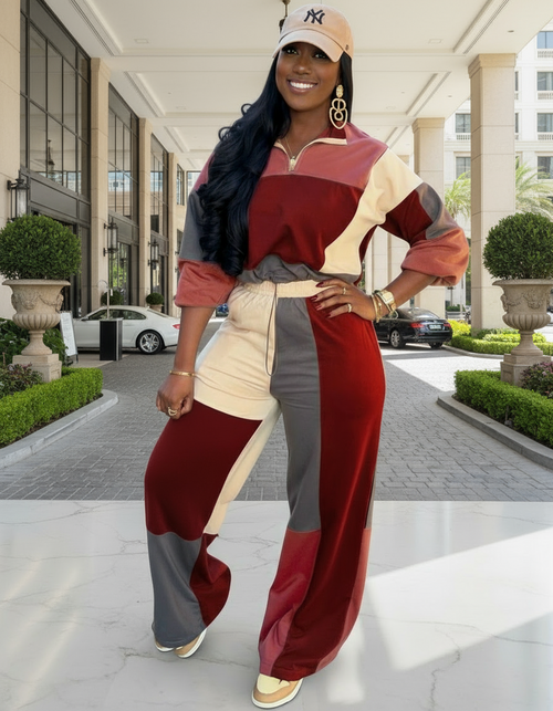 Colorblock Zipper Sweatshirt Pants Set| Burgandy
