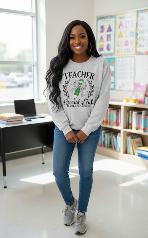Teacher Social Club Crew Sweatshirt| 3 Colors| Plus Size