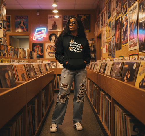 Raised on Saturday Morning Cartoons Hoodie| Black