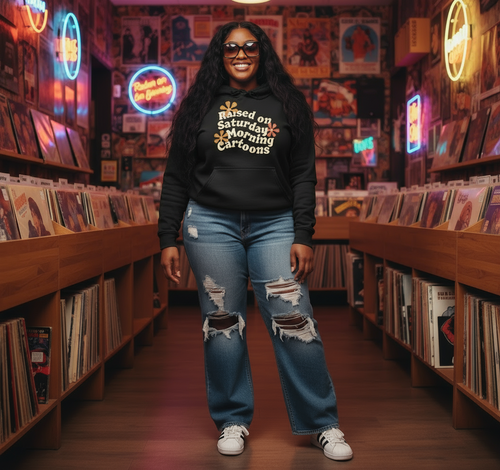 Raised on Saturday Morning Cartoons Hoodie| Black| Plus Size