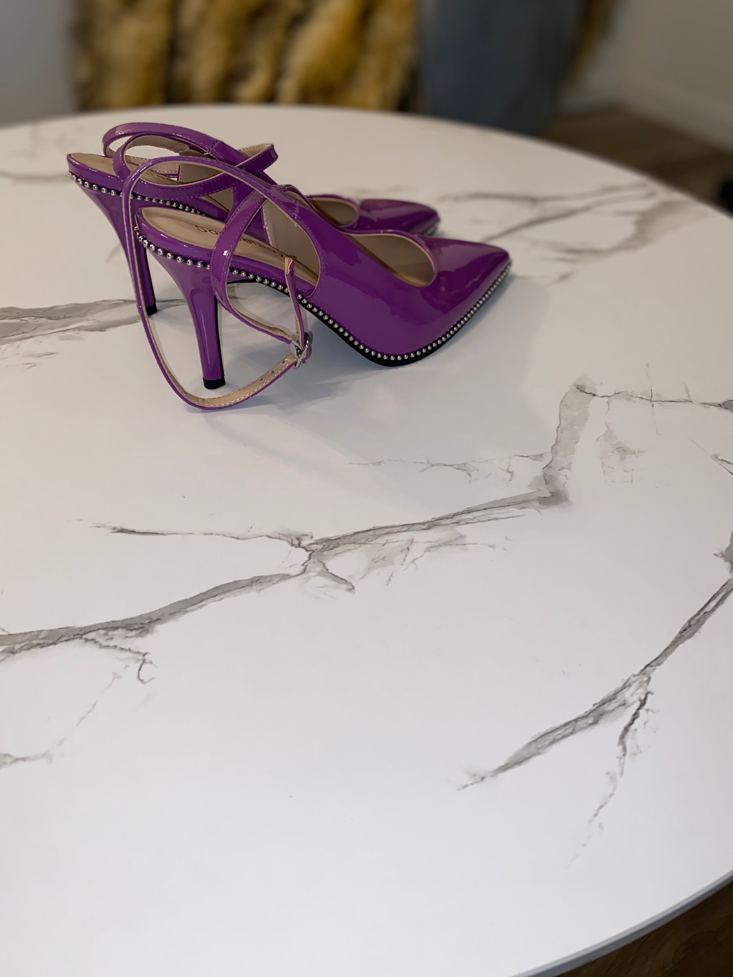 Elevate your style with our “Beaded Pointed Slingback Heel” in purple! These heels feature a secure slingback and ankle strap for comfort and breathability. Go from day to night effortlessly with this classic, elegant design. Take on any challenge with the perfect height and confidence that comes with our Ankle Strap Pumps. These stunning purple heels will elevate your look and add a touch of adventure to your wardrobe. Don't compromise on style and comfort.