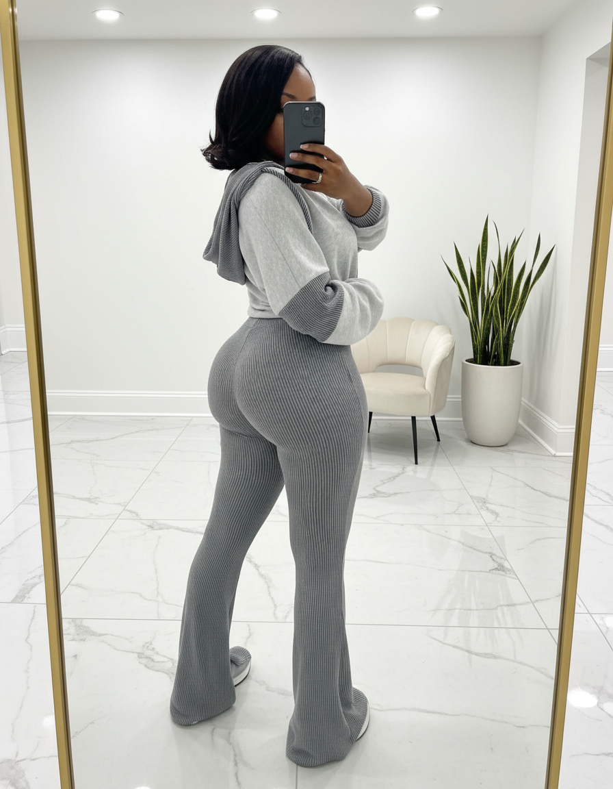 Luxe Hooded Zipper Jacket Flare Pants Set| Grey